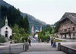 The great importance of the Höllental today for long-distance traffic crossing the relatively low-lying Hinterzarten saddle (about 910 m) was only achieved at significant cost. Initially, the cart track through the Wagensteige ("Wagon Ascent")[1] valley to the north was more important. But by the 12th century, another track, the Falkensteige ("Hawk Ascent"), had been built by the dukes of Zähringen from Freiburg im Breisgau to Donaueschingen, through what was then called the Falkenstein ("hawk stone") Valley (Falkensteiner Tal), the present-day Höllental. The track was guarded at the exit to the narrow pass by the Falkenstein Castle ("Hawk Rock Castle"), but was later threatened, nevertheless. Not until the coach and the large bridle train of Marie Antoinette, which was to bring her to her future husband, the subsequent Louis XVI of France, had to traverse the route, was the track developed into a road. The Falkenstein Valley achieved fame again during the retreat of French troops under General Moreau in 1796, at the Battle of Emmendingen, and was referred to as the Val d'enfer ("Hell Valley"). As early as 1691, Emperor Leopold I had described the present-day Hirschsprung as die Höll ("hell", formerly also "hollow"), when he reviewed the defence of routes through the Black Forest. Even the name of the Ravenna ravine had French or other Romanic origins; it is related la ravine. The term arose considerably earlier because it was already in use by 1560.[2][3] During subsequent work on the route, the gorge at Hirschsprung was successively blasted open. The level of traffic on the present-day B 31 has resulted in plans to replace the main road through Falkensteig, the gorge, and the bends at Höllsteig by tunnels.