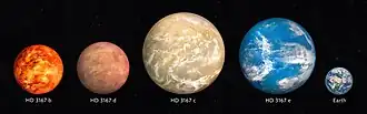 - ^ a b Gandolfi, Davide; et al. (September 2017), "The transiting multi-planet system HD3167: a 5.7 M🜨 Super-Earth and a 8.3 M🜨 mini-Neptune", The Astronomical Journal, 154 (3): 15, arXiv:1706.02532, Bibcode:2017AJ....154..123G, doi:10.3847/1538-3881/aa832a, S2CID 43466609, 123.