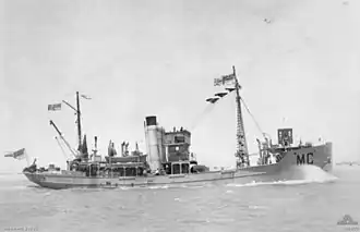 HMAS Mary Cam was an auxiliary minesweeper operated by the Royal Australian Navy (RAN) during World War II. She was launched in 1918 by Ritchie, Graham & Milne, Whiteinch at Glasgow as Joule.[2] The ship operated in Australian waters from 1928, and was requisitioned by the RAN on 5 October 1939. She was returned to her owners after the war and was later scrapped in 1957.