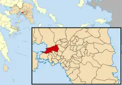 Haidari[3] (Greek: Χαϊδάρι, Chaidari) is a suburban town in the western part of the Athens agglomeration, west of Athens city center.