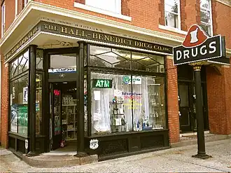 The Hall-Benedict Drug Company Building is a historic commercial building at 763-767 Orange Street in the East Rock neighborhood of New Haven, Connecticut. Built in 1909 to house a pharmacy, it is a little-altered and well-preserved example of an early 20th-century mixed residential-commercial neighborhood building. The building was listed on the National Register in 1986.[1] It is also a contributing property in the Whitney Avenue Historic District.