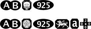 These are shown in the top of the two example hallmarks. The bottom example shows the extra marks that can also be struck, the lion passant, indicating Sterling silver, the date mark (lowercase a for the year 2000), and in this example, the 'Millennium mark', which was only available for the years 1999 and 2000. The bottom example bears the Yorkshire rose mark for the Sheffield Assay Office.[18]