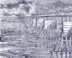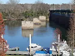 In its heyday, 60,000 bales of cotton worth $2,000,000 were brought by wagon to Hamburg each year.[10] With the completion of the Augusta Canal (1848) and general expansion of railroads in the 1850s, strenuous overland hauls to Hamburg became unnecessary and the famous wagon traffic declined.[11]: 238 Hamburg became a ghost town by the time of the Civil War.[11]: 20