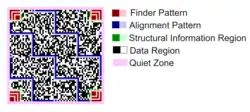 - Structural Information Regions – is surrounding all four Finder Patterns and used to encode symbol parameters like version, mask and error correction mode;