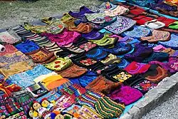 These textiles cannot compete with those produced in Asia and other places in terms of price, so they are sold as cultural and social objects.[3] Like in other parts of the country, many handcraft sales are to tourists and collectors, who often want a piece of Mexico's indigenous and popular culture, such as blouses made by women of the Chiapas highlands. These are then often paired with modern clothing, such as jeans.[3] The main market for handcrafts is San Cristobal de las Casas.[6] The Real de Guadalupe Street in this city is filled with vendors selling handcrafts. These vendors are mestizo (mixed indigenous and Spanish) and belong to families that established themselves one of the main streets of the city.[3]