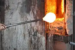 Blown glass has been an important industry in the state since the early 20th century, especially in Tonalá and Tlaquepaque. Initially, it was developed to make bottles for the tequila industry. Since then, it has developed into the making of various utilitarian and decorative objects, using a variety of techniques.[1] Traditional colors for glass pieces include cobalt blue, amethyst and green. Blown glass remains true to traditional forms as well as division of labor, with workshops having apprentices and workers under a master craftsman. However more modern setups have come into play since the mid 20th century, when Jose Camarasa began to manufacture glass prisms for light fixtures and lamps in Tlaquepaque. He also makes ornamental and utilitarian pieces of lead crystal, with the red pieces particularly prized.[3]