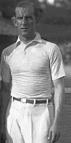 The German team led by Moldenhauer would win that tie against the Italy and also defeated Czechoslovakia in Prague, where Moldenhauer won two rubbers, including the doubles, partnering Prenn.[4] This put Germany into the 1929 European Zone final against Great Britain, which they won 3-2, with Moldenhauer winning a singles rubber over Bunny Austin.[4] They were then whitewashed in the Inter-Zone final by the United States.[4] Moldenhauer lost all three of his rubbers, one of which was against Bill Tilden.[4] It was Moldenhauer's final International Lawn Tennis Challenge appearance, meaning he finished with 14 career wins, from 22 matches.[4]