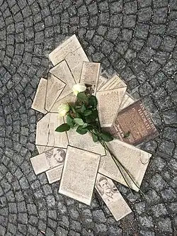 On February 18, 1943, two of the siblings, Hans and Sophie, were handing out flyers at the Ludwig Maximilian University of Munich, when they were caught by the custodian, Jakob Schmid, who informed the Gestapo.[2] By February 22, 1943, they had been sentenced to death by the People's Court, led by Judge-President Roland Freisler and were executed by guillotine on the same day in the Stadelheim Prison. Their grave is in the adjacent Perlacher Forst cemetery (grave number 73-1-18/19).[3]