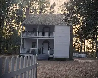 Harmony Hall is a late 18th century home and was built by Col. James Richardson, who settled in Bladen County sometime prior to the American Revolution. Richardson received a large portion of land for his military service and the exact size of the land received is unknown. The land is on the banks of the Cape Fear River and was partially a grant from King George III for Col. Richardson's gallant service with General James Wolfe in the French and Indian War. The Colonel became interested in the land after he and his brother were shipwrecked off of Cape Hatteras and had to spend several months making repairs in Bladen County, NC before they could return to their home in Stonington, Connecticut. Col. Richardson fell in the love with the land and, after receiving a large tract of land their for his service, he built his home there, 12 miles (19 km) from Elizabethtown, NC and 1-mile (1.6 km) from the river. The building is frame built in a two-story Gabled style with two-story galleries, an unusually tall foundation with ventilation holes, and exterior stairs leading from the second story to a full attic. The interior is partially paneled with wide pine boards, some with chair-rails and some plastered above a paneled dado. The mantels are modeled after the Adam design. Shortly after completing the construction, Col. James was captured by the British army during the Revolutionary War and paroled. However, after learning of many British soldiers breaking their parole, he too broke his and re-enlisted in the American Army.[2]