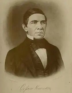 During his final years as a prairie lawyer Lincoln's reputation was elevated in the lead-up to his presidential campaign by his success in a sensational murder trial involving a Harrison relative.[54] Lincoln in 1859 represented his third cousin Simeon Quinn "Peachy" Harrison.[j] Peachy was as well the grandson of a political rival, Rev. Peter Cartwright.[56] Harrison was charged with the murder of Greek Crafton, whom he mortally wounded with a knife after suffering repeated assaults by Crafton. As Crafton lay dying of his wounds, he confessed to Cartwright that he was responsible for provoking Harrison. Lincoln called Cartwright to testify as to the confession but the judge initially denied its use as inadmissible hearsay. Lincoln succeeded in obtaining an acquittal after arguing with the judge, to the point of risking contempt, but ultimately convinced him to admit the testimony and confession as a dying declaration.[54]