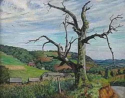 While critics praised him for skillful depiction of his subjects, they did not credit him with stylistic individuality or skill in reshaping natural subjects to achieve emotional expression.[2][3] Early in his career critics called his work "simple, direct, and sincere."[4] Of his mature work others used terms like "quaint",[2] "convincing",[5] "capable",[3] "truthfully realistic",[3] and "honest".[6] In 1939, Howard Devree of the New York Times wrote: "Shokler's work is quiet and unostentatious, possesses a real feeling, and combines a rather traditional approach with modern vigor and spirit."[7]