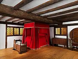 A dendrochronology survey in 2007 proved that the earliest portion of the "Hart" house dates to 1680 when it was built by a newly married Samuel Hart, a tanner. For many years it was thought to date to 1640 as the home of his father, Thomas Hart.[1] The house as originally built was a two-and-one half story single room plan house, with a chimney bay on the east end. An addition was later added onto the opposite side of the chimney c. 1725. Restorations to the house to make it more original took place in 1902 when it was used as a guest house. Two full interior rooms from the original structure were purchased in the 1930s by New York's Metropolitan Museum of Art (purchased a downstairs room) and Delaware's Winterthur Museum (purchased an upstairs room) as exhibits.[1] The Hart House now serves as a tavern and restaurant in Ipswich.[2]