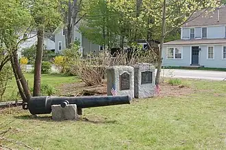 In the early 1980s, Route 31 was widened, as a result of which the Hartshorn Cannon saw increased damage from winter plowing and salt use on the roadways. Therefore, in 2009, amidst some controversy, an unknown person or people moved the cannon to what the Board of Selectmen eventually termed a "temporary location" in the Lyndeborough Center Historic District, some three miles away.[7] With the endorsement of the local newspaper, the Milford Cabinet, the Selectmen appointed a committee of local experts to find a permanent location for the cannon, two additional war monuments, and a new Vietnam Memorial. This committee consisted of seven people who together included the Town Moderator, two Lafayette Artillery members, three Vietnam War-era veterans (including one combat veteran), two former selectmen, two college professors, and three lifelong residents of the town.[8] In April 2010, citing the desire to maintain the historic integrity of the Lyndeborough Center Historic District as well as South Lyndeborough, the group decided to place the memorials on the South Lyndeborough Village Common. The Hartshorn Cannon was moved back to the common (to a new location away from the road) in May 2010, and the cannon was a center of focus in the town's 2010 Memorial Day ceremonies.[9]