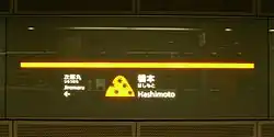 Hashimoto Station (橋本駅) is a subway station on the Fukuoka City Subway Nanakuma Line in Nishi-ku, Fukuoka in Japan. Its station symbol is a picture of maple leaves in front of an orange mountain, because there used to be Momiji-Hachimangu(ja:紅葉八幡宮).