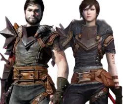 ![]() The default male (left) and female (right) Hawkes, as they appear in promotional material for Dragon Age II. | |