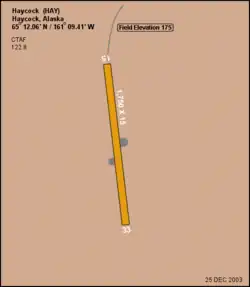 3. ^ "HAY - Haycock Airport - FAA information effective 30 August 2007". FAA data republished by AirNav. Archived from the original on 14 September 2007.