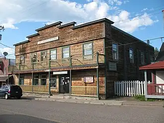 In 1911, the rebuilt Hazelton Hotel opened with 32 guest rooms and a bunkhouse which accommodated another 30 people.[68] Mid-year, the Bank of Vancouver opened a branch,[69] initially using a tent,[70] and the Inland Colonist relocated from Kitselas[71] but publishing ceased that November.[72] The Omineca Miner newspaper was launched that August.[73]