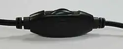 Wired headphones may be equipped with a non-detachable cable with a plug at the end or a socket on the headphones and a detachable male-to-male cable. An external audio splitter can be used to allow connecting another wired headphone in a parallel circuit, which splits the audio signal to share with another participant.[29] Some headphone cords are equipped with a potentiometer for volume control.