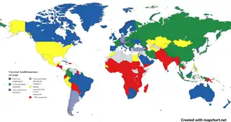 Countries in the table are categorized by the main system of financing their healthcare. Many countries in the world have multi-tiered healthcare systems with different ways of financing healthcare for different people and purposes.