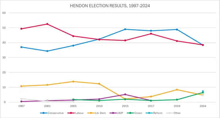 The constituency has been a Conservative-Labour bellwether since 1997. Andrew Dismore won the seat in 1997 as part of a nationwide landslide victory for the Labour Party. Matthew Offord won the seat for the Conservatives in 2010 by only 106 votes. The 2015 result gave the seat the 37th most marginal majority of the Conservative Party's 331 seats by percentage of majority.[4]