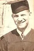 Mustin remained at St. Stephen's through his sophomore year of high school. As a tenth grader, he was captain of the football and baseball teams. The high scorer on the basketball team and the player with the highest batting average on the baseball team, he won both the teams' cups as outstanding player, as well as the cup for the school's outstanding athlete. In the late summer of 1948, Mustin moved to Coronado, CA when his father received orders to command his first ship.[1] Mustin's grandmother, Corinne, and her second husband, Admiral George D. Murray, would frequently visit North Island to visit the Mustins and their friends. They would often throw grand cocktail parties at the air station's flag cabin, and Mustin would often find himself in the presence of such Navy notables as Halsey and Nimitz. He recalled that "the events of the war were fresh in these guys' minds. They would be talking over what now are the famous battles of World War II, and they'd be saying 'Well, so-and-so was nervous and abandoned his ship too early.' They talked the way we do about guys that are the giants of history. All that stuff had a great influence on me."[1] As a youngster Mustin admired and respected his father and his friends. There was never any doubt in his mind that he wanted to join the navy and be like them.