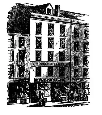 Henry Hoyt was a publisher and bookseller at No. 9 Cornhill, Boston, Massachusetts, United States, active from 1850 until 1876. He specialized in juvenile and popular religious works, such as the Sunday School Journal and the Child's Companion and Youth's Friend. The firm was eventually succeeded at the same location by Ira Bradley & Co., which became Bradley & Woodruff.[1]
