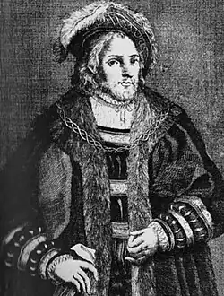 Henry XVI of Bavaria, also listed as Henry IV of Bavaria-Landshut (1386 – 30 July 1450, in Landshut; German: Heinrich der Reiche, Herzog von Bayern-Landshut, lit. 'Henry the Rich, Duke of Bavaria-Landshut'), from 1393 Duke of Bavaria-Landshut.[1] He was a son of Duke Frederick and his wife Maddalena Visconti, a daughter of Bernabò Visconti.