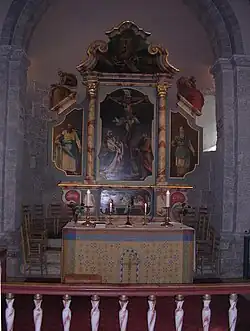 The earliest existing historical records of the church date back to the year 1432, but the church was originally constructed during the second half of the 1100s. The church has a rectangular nave, a tower to the west, and a narrower choir with a semicircular apse. The choir and apse have a lower roof line than the nave. Research on the building has shown that the choir part is the oldest part of the existing building with the apse and nave built a little later. Originally, the current choir was the stone nave that was attached to a wooden building. The wood building was later torn down and the stone building was expanded. Over the years, the church fell into disrepair. During the early 1400s, the western wall of the church was taken down and the stone nave was shortened by about 4 metres (13 ft) and then a new wall was built. In 1879, the church was enlarged by doubling the length the nave (adding about 10 metres (33 ft) to the nave) and then a new west tower was added on the end of the new nave. In the 1960s, the church was thoroughly renovated by the architect John Egil Tverdahl.[3][4]