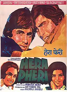 Hera Pheri (transl. Foul Play) is a 1976 Hindi masala film directed by Prakash Mehra and starring Amitabh Bachchan, Saira Banu, Vinod Khanna, Sulakshana Pandit, Shreeram Lagoo and Asrani. The film's music is by Kalyanji Anandji and the lyrics were by Anjaan, Indeevar.