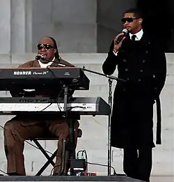 Stevie Wonder (left) and Usher performing in 2009