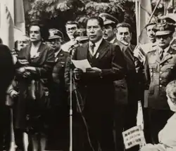 Terrazas giving a speech during the centenary of the War of the Pacific.