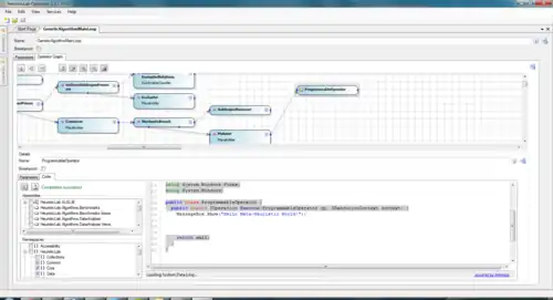 - One of the features that distinguishes HeuristicLab from many other metaheuristic software frameworks is the algorithm designer. HeuristicLab allows to model algorithms in a graphical way without having to write any source code. Algorithms in HeuristicLab are a composition of operators which are chained together. This sequence of operators is called the operator graph and can be viewed and edited for any algorithm in HeuristicLab. HeuristicLab also offers a so called Programmable Operator that can include source code which can be written from within HeuristicLab. Seeing how other algorithms work allows to try out new ideas by starting from an existing algorithm and incrementally modifying it. Of course new algorithms can also be created by writing code.
