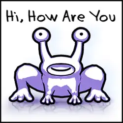 Hi, How Are You is a third-person platform game that is based on the art and music of Daniel Johnston. It was developed by Peter Franco and Stephen Broumley of Dr Fun Fun and Smashing Studios for the iPhone and iPod Touch. Players control Jeremiah the frog and navigate platform mazes in order to win back his true love from Satan.