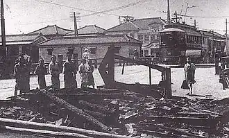 The Hibiya incendiary incident (日比谷焼打事件, Hibiya yakiuchi jiken), also known as the Hibiya riots, was a major riot that occurred in Tokyo, Japan, from 5 to 7 September 1905.[1] Protests by Japanese nationalists in Hibiya Park against the terms of the Treaty of Portsmouth ending the Russo-Japanese War escalated into a violent two-day citywide riot when the police attempted to suppress the protests. The Hibiya incendiary incident resulted in the death of 17 rioters, led to the collapse of the government of Katsura Tarō, and is considered the first event of the Era of Popular Violence. Over 2000 rioters were later arrested for their involvement, with 104 being tried and 87 found guilty.