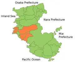 Location of Hidaka District in Wakayama Prefecture