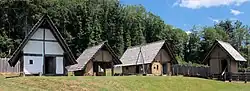 Holes in the ground, sockets for the wooden posts, prove the existence of buildings. It is unknown whether the buildings' purpose was accommodation or storage.