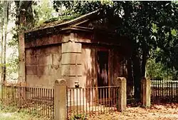 During the revolution there was only a very small population of farmers living on Hilton Head Island. This population was exclusively Loyalist, remaining allied to Parliament and the King throughout the entirety of the revolution. However, after the revolution they chose to simply "stay on" in South Carolina and make the best of living under the new republican form of government.[27] In 1788, a small Episcopal church called the Zion Chapel of Ease was constructed for plantation owners. The chapel's old cemetery, located near the corner of William Hilton Parkway and Mathews Drive (Folly Field), is all that remains. Charles Davant, a prominent island planter during the Revolutionary War, is memorialized there. Davant was shot by Captain Martinangel of Daufuskie Island in 1781.[23] This location is also home to the oldest intact structure on Hilton Head Island, the Baynard Mausoleum, which was built in 1846.