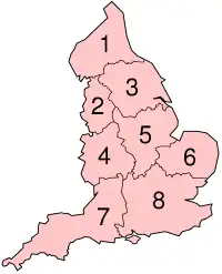 From the mid-1980s, the eight English Civil Defence Regions were as follows (using 1974/1975 boundaries):