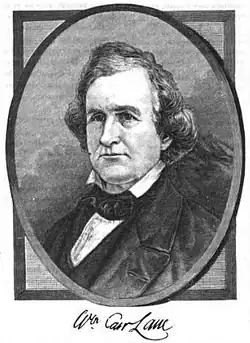 Among the early decisions of the General Assembly was to take up a petition from St. Louis for incorporation as a city with a charter. The first St. Louis city charter was approved by the legislature on December 9, 1822, which was subject to city voters approval (which then passed by a margin of 107 to 90).[16] The first mayor of the city was a recently arrived American physician, William Carr Lane, who defeated city founder Auguste Chouteau by a vote of 122–70 in April 1823.[17] A nine-member Board of Aldermen also were elected (replacing the earlier Board of Trustees), and the city limits were expanded west to Seventh Street and north and south by approximately 5 blocks each.[17]