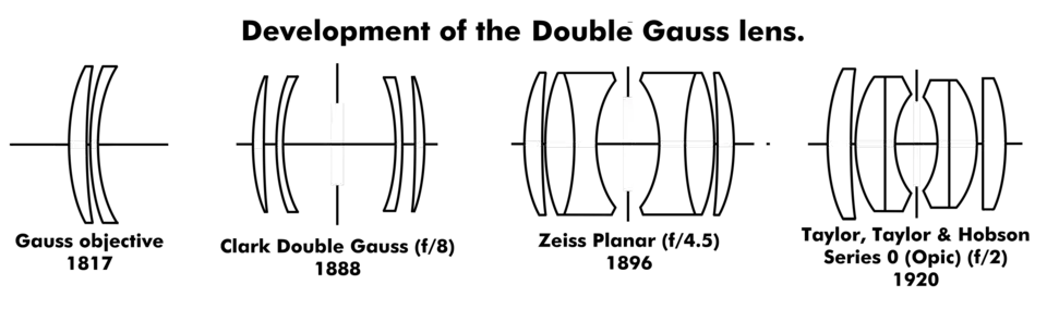 Later the design was developed with additional glasses to give high-performance lenses of wide aperture. The main development was due to Taylor Hobson in the 1920s, resulting in the f/2.0 Opic and later the Speed Panchro designs, which were licensed to various other manufacturers. The design forms the basis for many camera lenses in use today, especially the wide-aperture standard lenses used on 35 mm and other small-format cameras. It can offer good results up to f/1.4 with a wide field of view, and has sometimes been made at f/1.0.