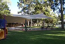 Much of Burnside's history has been observed and documented by institutions that have remained an important part of the lives of its residents: the school and the church.[25] The first school to open in the area was in Magill during 1846, preceding a proper statewide education system. Magill Primary School was enlarged in November 1855, when 38 boys and 29 girls enrolled; they were taught reading, writing, arithmetic, grammar, geography, history, drawing and singing by a sole teacher. By 1865 there were two teachers.[26] Glen Osmond Primary School was established in October 1858, preceding the Glen Osmond Institute, a centre for community debate and learning.[27] Burnside Primary School was built in 1872, taking over from a small private institution.[28] These primary schools, in the absence of proper libraries and similar institutions, received large collections of books and writings from the town's residents. Residents also took advantage of schools for frequent and heated debates on the future of the state and region, and these discussions often drew large crowds. However, even with this intellectual spirit, the adult population was still relatively disadvantaged in the sphere of education. The drive for learning continued until the Boer War placed more emphasis on physical activity and merit within society. Somewhat strangely, this development of learned activity was not replicated in Burnside's traditional centre near Tusmore, where the present Council Chambers, Community Centre and Library are located.[29]