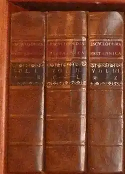 The first edition was reprinted in London, with slight variants on the title page and a different preface, by Edward and Charles Dilly in 1773 and by John Donaldson in 1775.[3] On the occasion of the 200th anniversary of the 1st edition, Encyclopædia Britannica Inc. published a facsimile of the 1st edition, even including "age spots" on the paper. This has been periodically reprinted and is still part of Britannica's product line.[7]