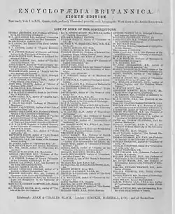 - ^ "List of contributors", Encyclopædia Britannica, vol. 25 (9th ed.), New York: New York, C. Scribner's sons, 1889
