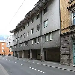 After World War II, only a few older community members returned to Innsbruck. In 1946, one member returned from the concentration camp at Theresienstadt and was appointed the contact person for Jewish matters by the province. The Jewish community in Innsbruck grew slowly and on 14 March 1952, the 'Innsbruck Jewish Community for Tyrol and Vorarlberg' was established.[1] In 1961, the community was run by Oscar von Lubomirski, a converted Polish nobleman.[2] A prayer hall was rented at Zollerstrasse 1, where the Innsbruck Jews would meet and pray.[1][5] The offices for the 'Innsbruck Jewish Community for Tyrol and Vorarlberg' were housed there.[7]
