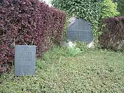 The assassination of Ernst vom Rath, Third Secretary of the German Embassy in Paris, by Herschel Grynszpan served as a pretext for a nationwide pogrom against Jews throughout Germany and Austria on the night of 9–10 November 1938, colloquially known as Kristallnacht. In Laupheim, Jewish shops were vandalised and the synagogue was burnt to the ground. The fire-brigade was prevented by locals from extinguishing the fire. A number of Jewish inhabitants were arrested and transported to the town hall. From there, they were marched to the burning synagogue, escorted by members of the Nazi-party, where they had to listen to a diatribe by a SA-leader, after which they were forced to carry out physical exercises in front of the burning building during which several of them were physically assaulted and injured.[47] Afterwards, some of them were released, whereas the more prominent Jews were transported to the concentration camp Dachau. One, Sigmund Laupheimer, was beaten to death by SS guards during his confinement there.[48] By February 1939 16 of the imprisoned men had been released.[49] The main perpetrators, were never brought to justice as they were either killed during the war or missing in action. 16 locals, however, were tried in 1948. All of them claimed that they were acting under orders. Four of them were acquitted whereas the twelve others were sentenced to prison terms ranging between two months and one year for crimes against humanity and being accessory to arson.[50]