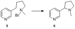 No further examples of the reaction were reported for about 25 years. But in 1909, K. Löffler and C. Freytag extended the transformation to simple secondary amines and applied the process in their elegant synthesis of nicotine (6) from N-bromo-N-methyl-4-(pyridin-3-yl)butan-1-amine (5).[8][9][10]