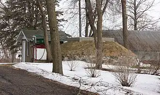 ![]() The pump house, reservoir, and winter bee cellar at Hofmann Apiaries | |