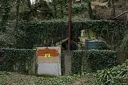 • Ho12 (Fuel store II) – Incomplete and private – La Commune, St. Saviour. The blocked off entrance lies some 100 yards to the south of the road known as La Commune, where it descends from Victoria Village and joins La Rue au Bailli. The tunnel is on private property and was under construction in mid 1943. However, the popular rumour that there is a 'tunnel beneath Victoria Village' is false as only about 60 yards of rubble had been excavated when all work ceased. The adit was destroyed with explosives following the 1962 tragedy in Ho2, but for many years the precise spot could be located by a length of prefabricated 60cm railway track protruding from the rock face. The track was recovered in 1980 and is now in the care of the Channel Islands Occupation Society (CIOS).