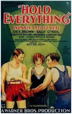 Hold Everything is a 1930 American pre-Code film. This musical comedy film was photographed entirely in early two-color Technicolor. The first all Technicolor musical comedy film was "On With the Show" in 1929. "Hold Everything" was adapted from the DeSylva-Brown-Henderson Broadway musical of the same name that had served as a vehicle for Bert Lahr and starred Winnie Lightner and Joe E. Brown as the comedy duo. The romantic subplot was played by Georges Carpentier and Sally O'Neil. Only three songs from the stage show remained: "You're the Cream in My Coffee", "To Know You Is To Love You", and "Don't Hold Everything". New songs were written for the film by Al Dubin and Joe Burke, including one that became a hit in 1930: "When The Little Red Roses Get The Blues For You". The songs in the film were played by Abe Lyman and his orchestra.