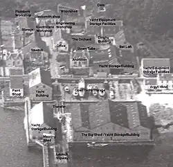 By 1900 most of the infrastructure required for the production of high-calibre wooden boats was in place: pier, slipway, sawmills, workshops, building-sheds, stores, paint shop, engine house, sail loft and workers' houses.